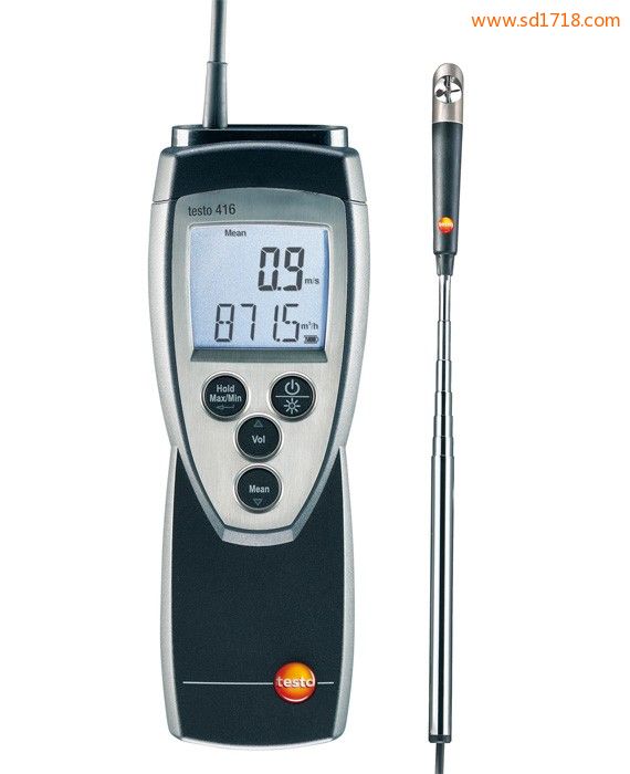 testo 416精密型葉輪風速儀,希瑪 風速計,配備固定式葉輪探頭,帶伸縮手柄(最長890mm)。